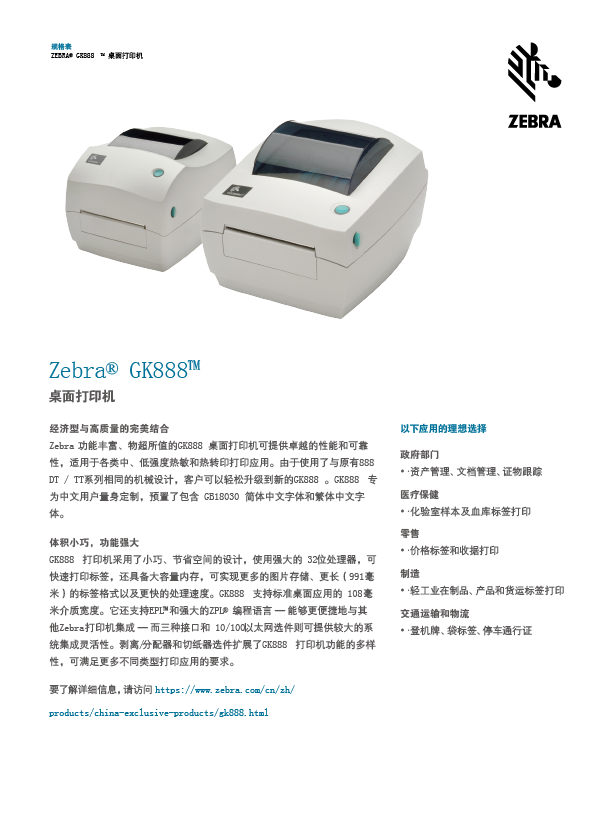ZEBRA® GK888TM 桌面打印机